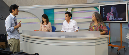 神谷成美(左)キャスター、三橋大樹キャスター(中)、私